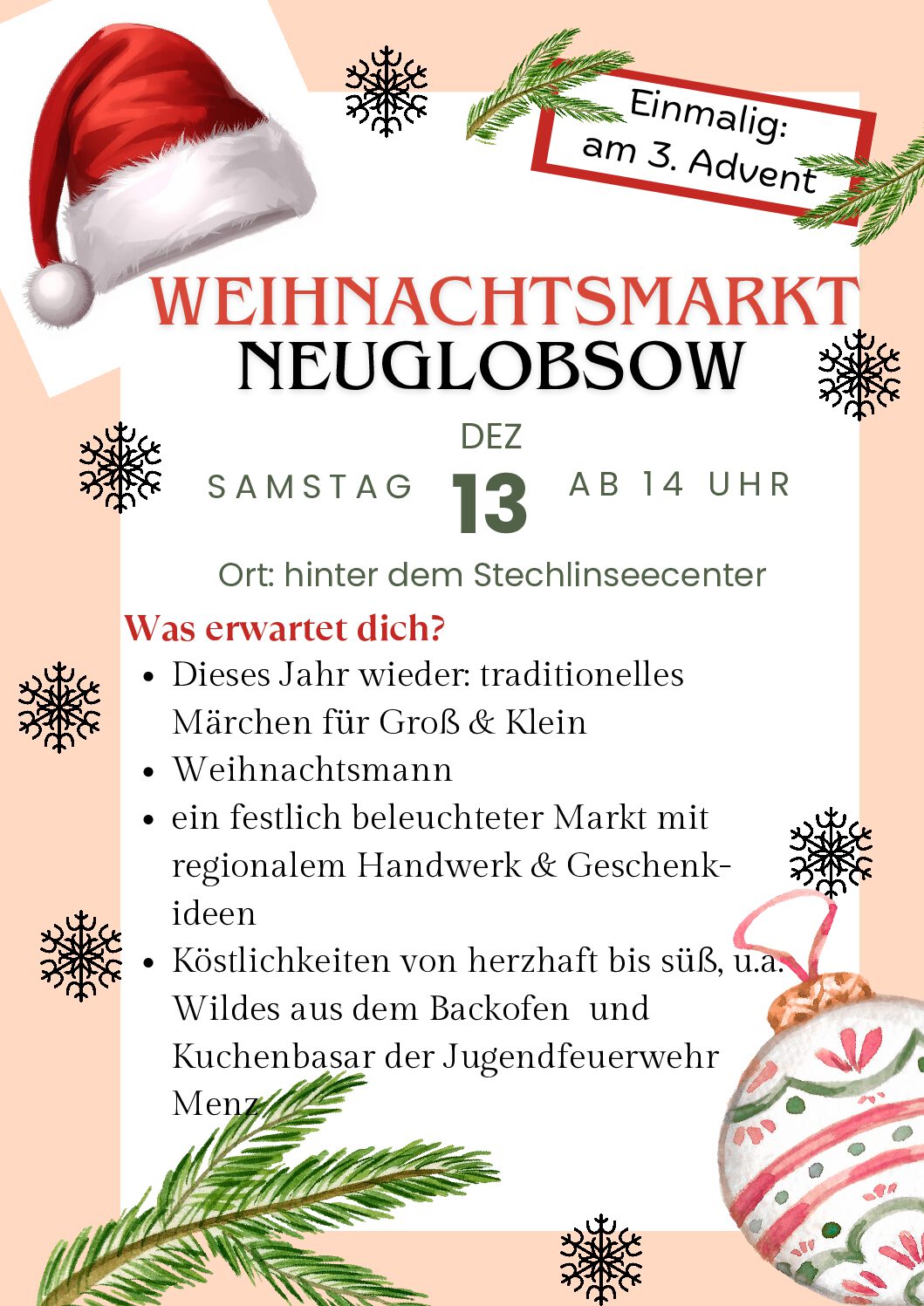 13.12.: Weihnachtsmarkt Neuglobsow 13.12.: Weihnachtsmarkt Neuglobsow 7. Dezember 2025 Joachim Krebser